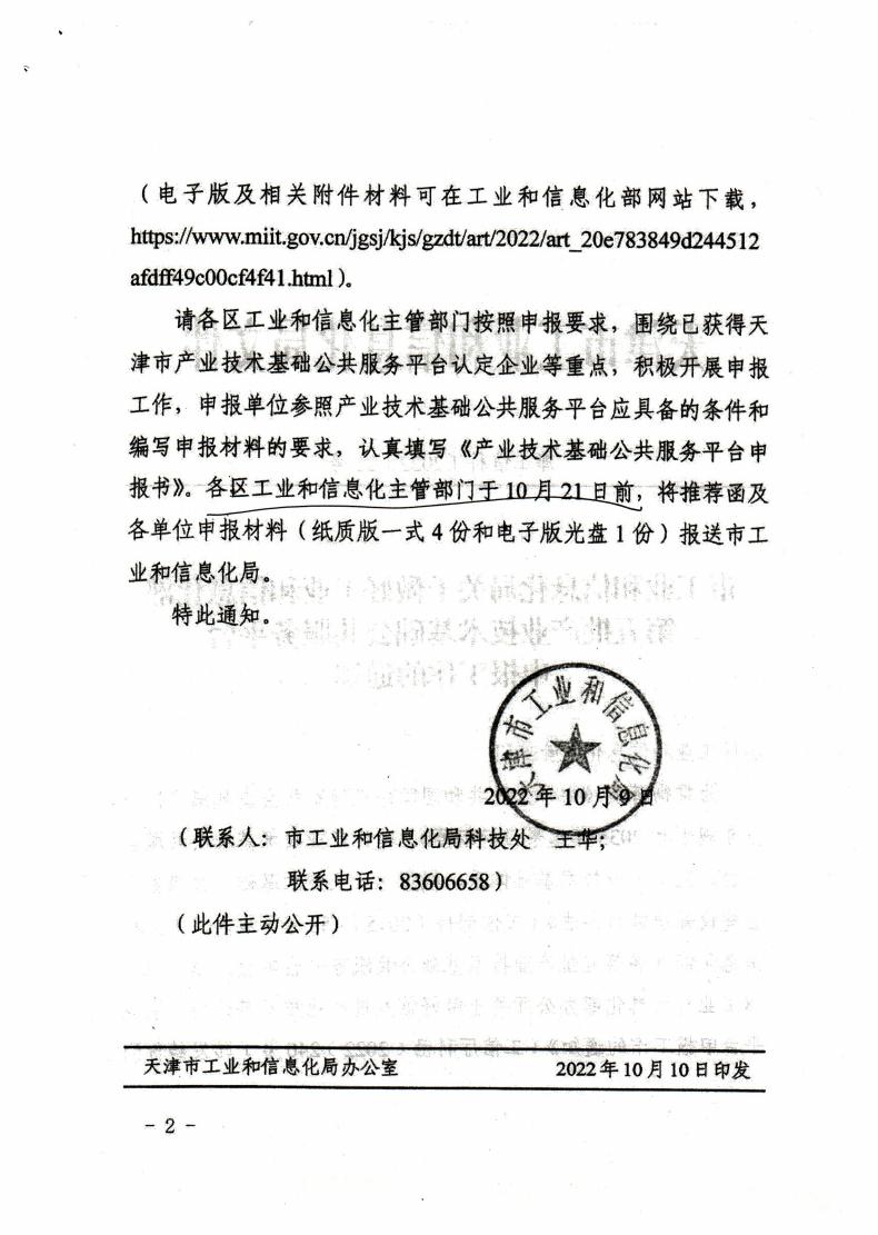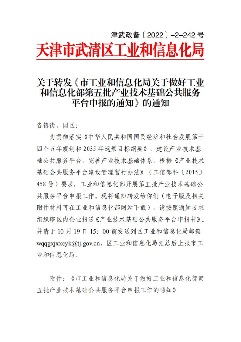 市工业和信息化局关于做好工业和信息化部第五批产业技术基础公共服务平台申报工作的通知