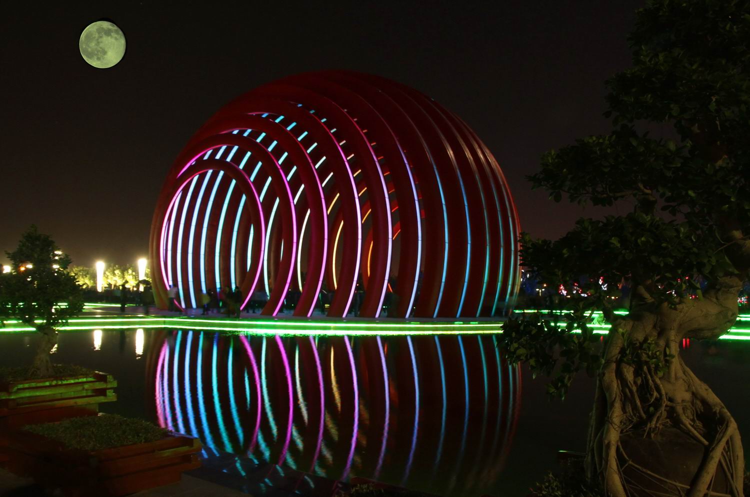 文化公园占地27.3公顷,以中心对称博古架式的设计手法,按照北静南动的理念,打造“一轴两区两馆”的景观格局。“一轴”即北入口、音乐喷泉、主题雕塑、舞池和南入口,“两区”为自然生态区和休闲娱乐区,“两馆”为影剧院和图书馆。文化公园与少年宫连接一起,形成完整的综合性休闲场所。